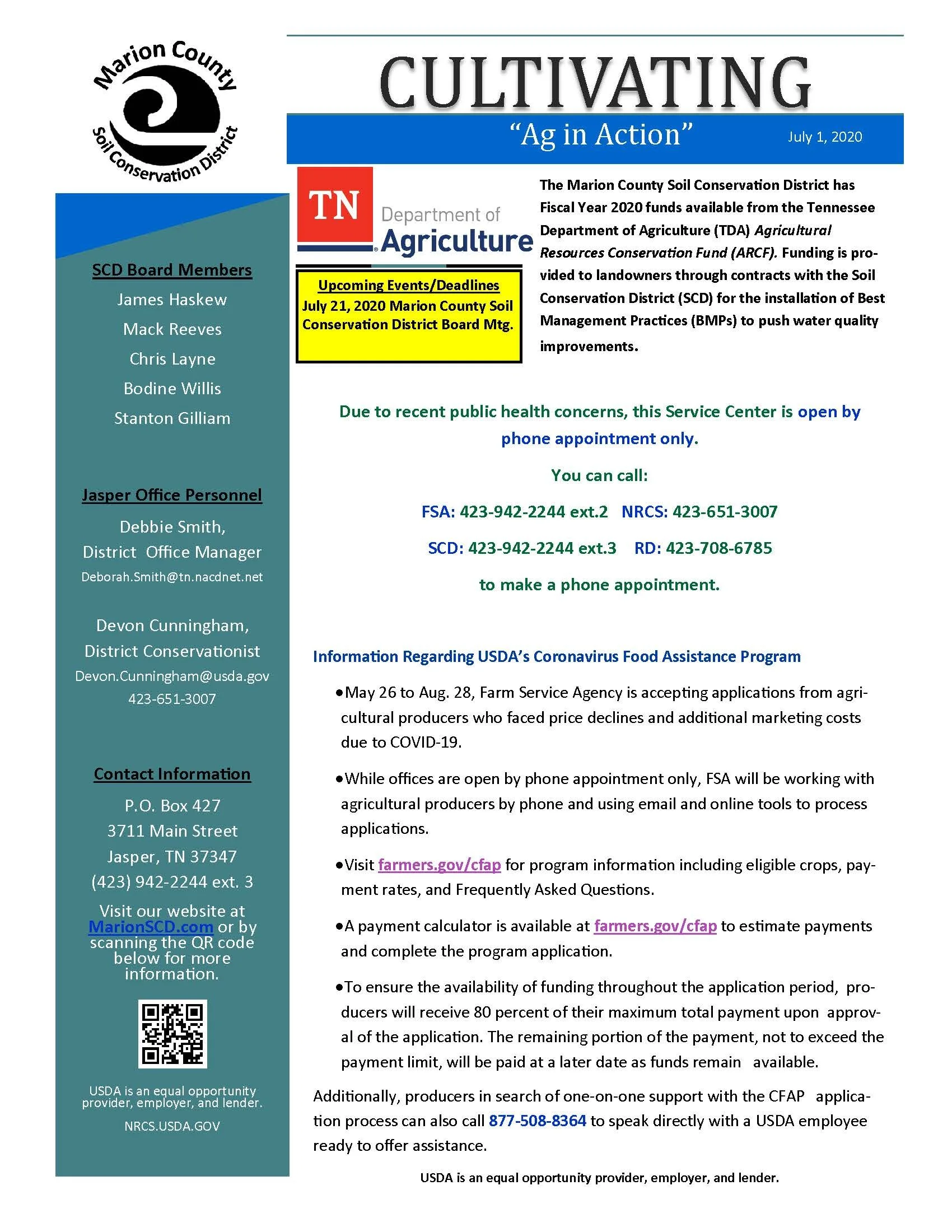 Marion County Soil Conservation District Newsletter July 2020 To access the link in the newsletter below, click here. Denise MasonJuly 1, 2020 Facebook0 Twitter 0 Likes