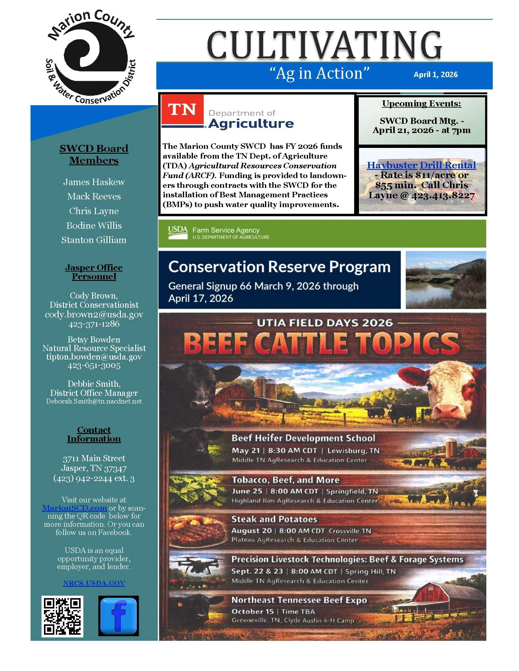 Marion County Soil Conservation April 2026 Newsletter To access the links in the newsletter below, click here. Hannah PalmgrenMarch 23, 2026 Facebook0 Twitter 0 Likes
